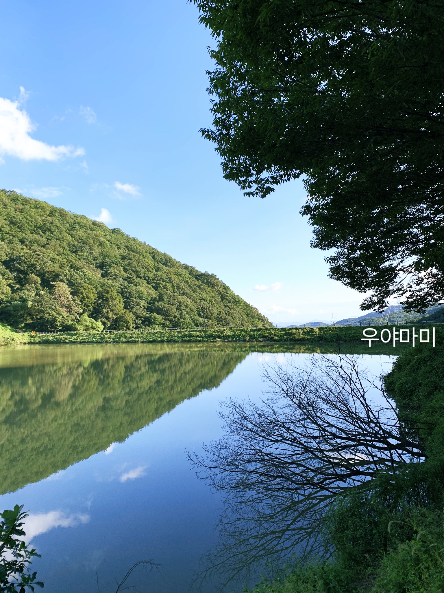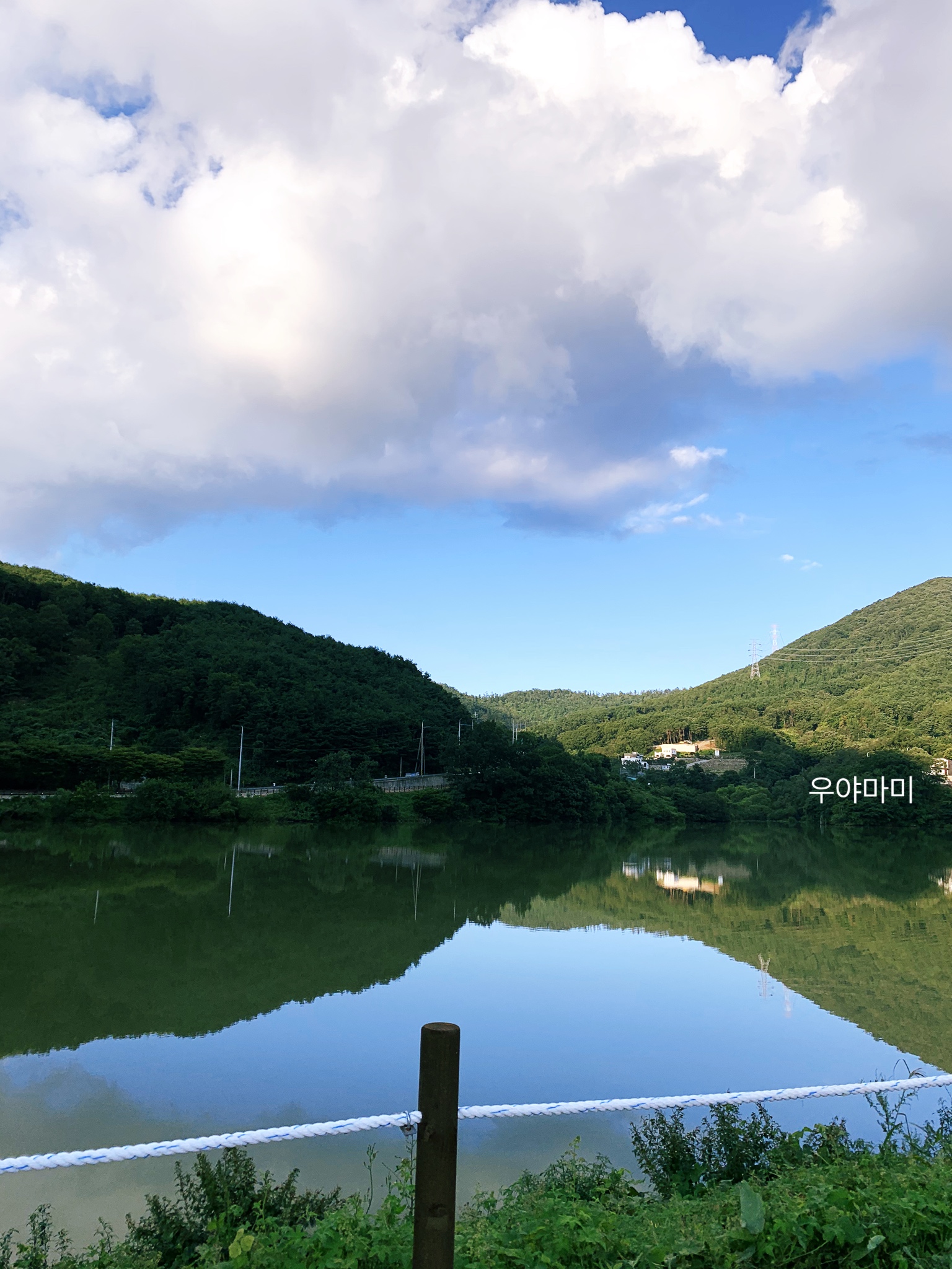 수면에 비친 산이랑 하늘이 너무 그림같았어요~