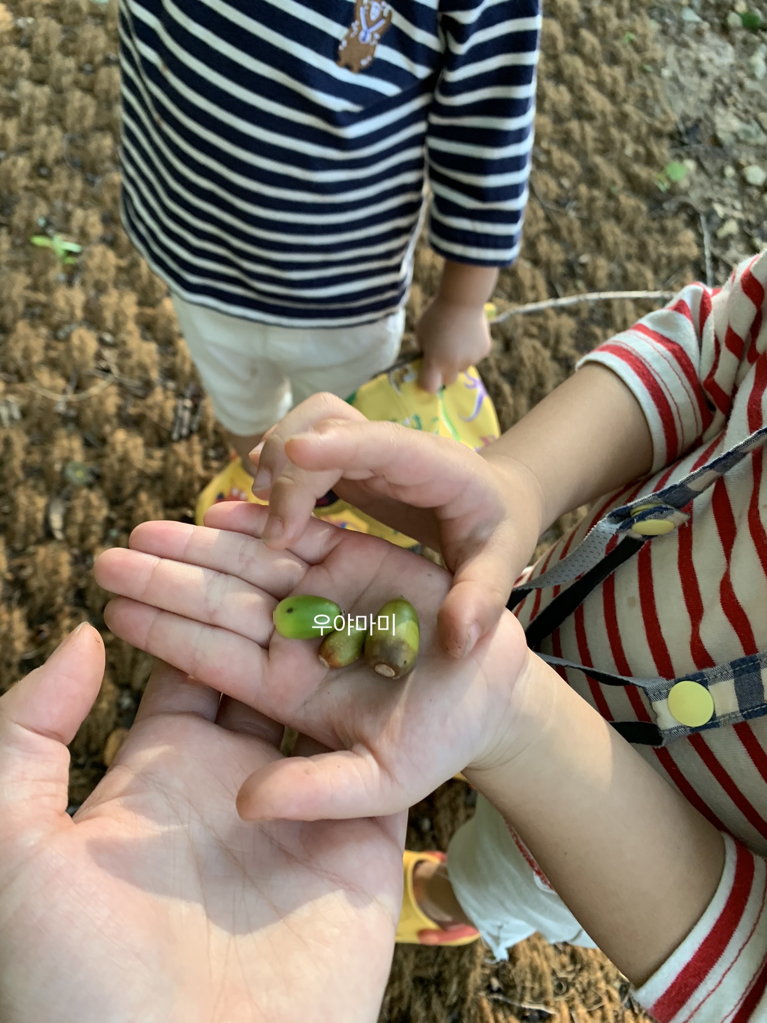아이들은 도토리도 줍고 밤송이도 까서 구경해 보았어요